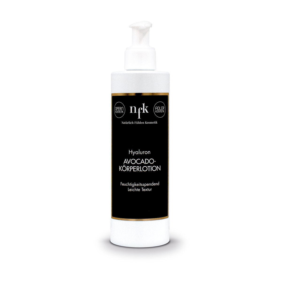 Körpermilch für die tägliche Körperpflege. Frische, rasch einziehende Emulsion mit Hyaluronsäure und Avocado. Sie versorgt die Haut intensiv und lang anhaltend mit Feuchtigkeit. Natürliche Wirkstoffe und leichte pflanzliche Öle nähren, straffen und schützen die Haut und lassen sie jung aussehen.
